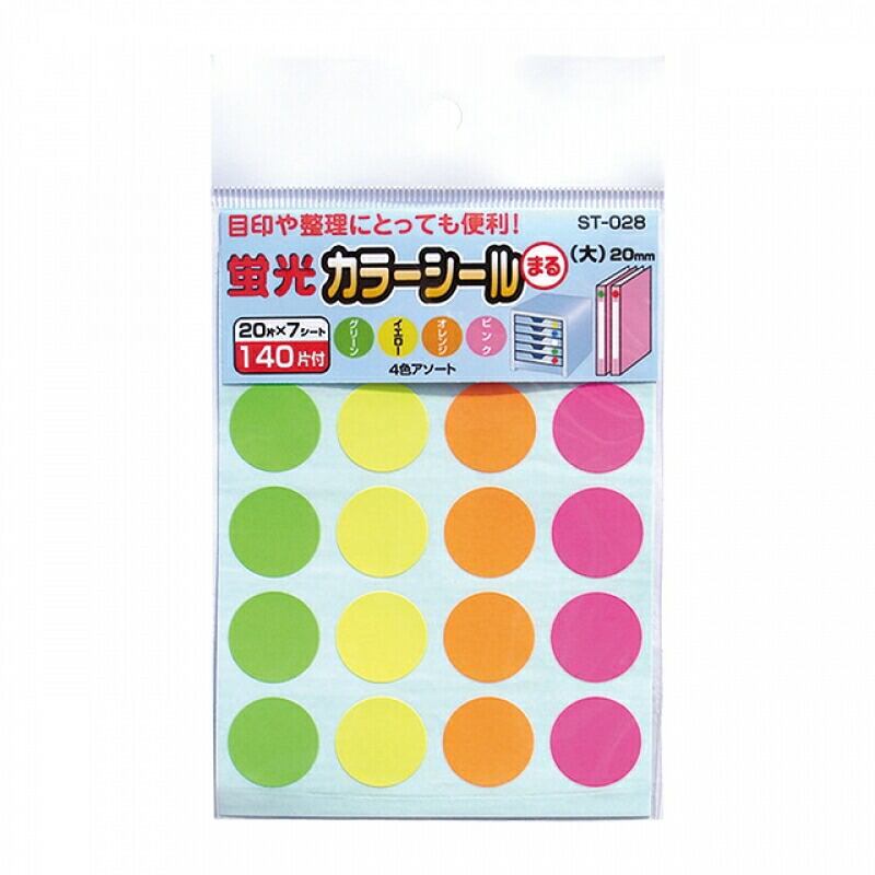 【セット売り】10個セット 蛍光カラーシール大 140片 整理分別目印に! komodaST-028AR【メール便対応 一個口で2セットまで同梱可】 | ギフトカンパニー(giftcompany)
