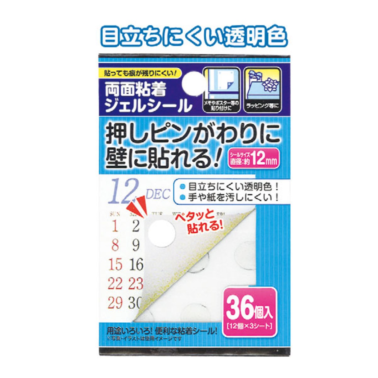 【セット売り】12個セット 押しピンがわりに両面粘着ジェルシール12mm36個入 画鋲代わりに壁に貼る seiwa44-218AK | ギフトカンパニー(giftcompany)